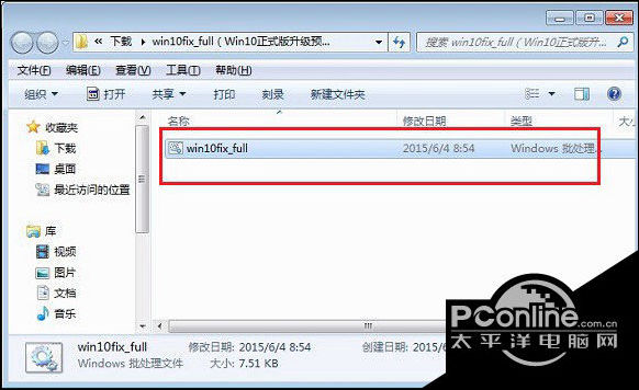 1、首先下载win10fix_full.bat(点此下载),下载之后解压,然后直接点击win10fix_full.bat文件运行,如下图所示。