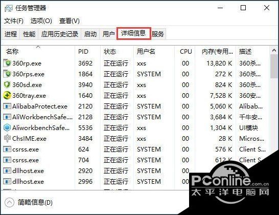2、打开任务管理器后,切换到【详细信息】选卡;