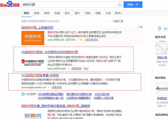 当我们有了这些长尾关键词后就可以围绕着这些词扩展内容,那么这样的内容质量相关度都非常高,远远高于一般的新闻内容,因为关键词里都包含了“钢材”和“价格”,相关度极高,而这些长尾关键词的竞争力度又相对小很多,用内页做这些词排名也容易很多。