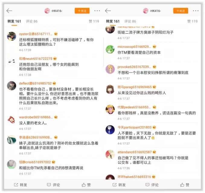 图中的博主妹子因为爱好《黎明杀鸡》,一直在微博上批判《第五人格》,突然引来一大堆水军人身攻击