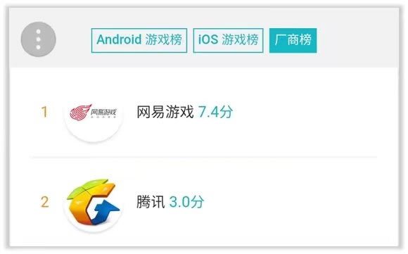 TapTap的厂商排行榜,网易依然名列第一(图是昨天截的,今天去看发现已经7.3分了)