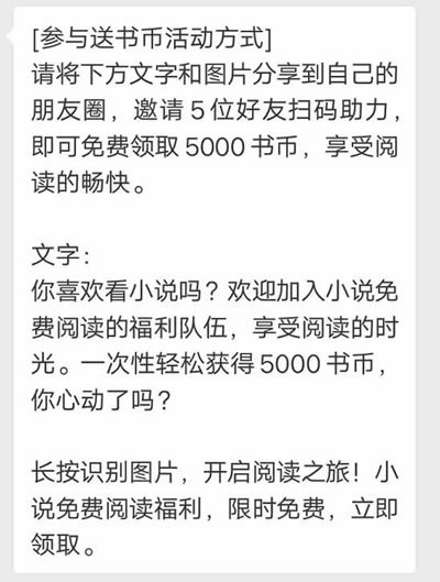 目前市面上小说平台虽然多,但几乎都需要付费阅读,该活动便以直接邀请好友助力赠送书币的形式来打造“免费书币”诱饵。