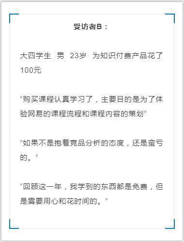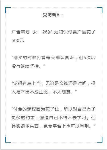 被称作互联网新风口的知识付费,究竟买到的是不是知识?为了更实际地了解用户在知识付费行业的投入产出比,我们采访了数位有过知识付费经历的用户,问题如下: