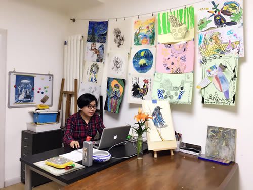 “与其每天挤地铁上班,在办公室效率低下的浪费时间,不如利用现有的资源把这件事儿做起来”。说做就做,她把家里的一套一室一厅闲置空房,重新收拾了出来,买了一张大桌子,购置了各种各样的绘画工具,包括画架、颜料、毛笔、油画笔、画纸,这样 “王对对画室” 就开张了。