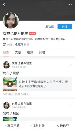 最近小编在头条上面看到有一个头条号,做的领域是非常的奇特,也非常的成功。在网上斗地主、打麻将都会有吧,在如今智能手机普及的情况下,很多人的手机都会有一些斗地主打麻将等消遣娱乐的游戏,但是有几个谁能把日常娱乐的游戏跟自媒体想结合起来呢。