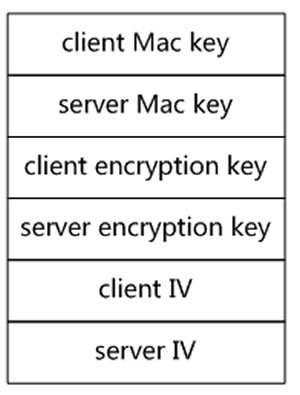 (a) mac key、encryption key 和 IV 是一组加密元素,分别被客户端和服务器使用,但是这两组元素都被两边同时获取;