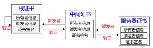 服务器证书、中间证书与根证书在一起组合成一条合法的证书链,证书链的验证是自下而上的信任传递的过程。