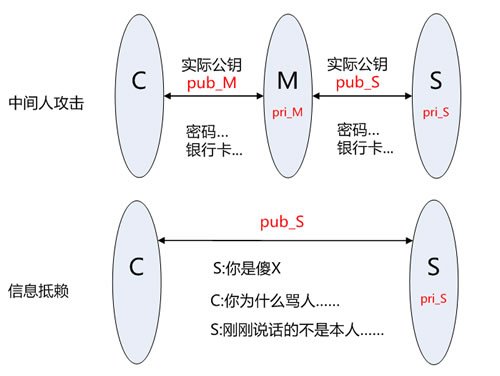 因此该方案下至少存在两类问题:中间人攻击和信息抵赖。