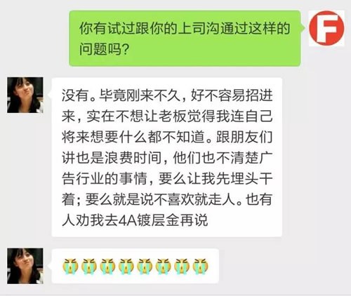 一个原先做Account的朋友,就是一直把自己当成小公司老板一样的心情,去解决客户生意上的问题,既能进行创造性工作,又能充分利用手边资源,现在已成为一家上市公司的CEO。另外还有媒介、Planner、创意、PM等等。其实都是一样的。从起跑线开始就已经迷失了方向,内心一腔热情,却不知道往哪里跑。广告人许多转行做市场、品牌,或去了甲方。还有去搞艺术的,拍电影的。还有学灵修,看心理医生,进精神病院的。