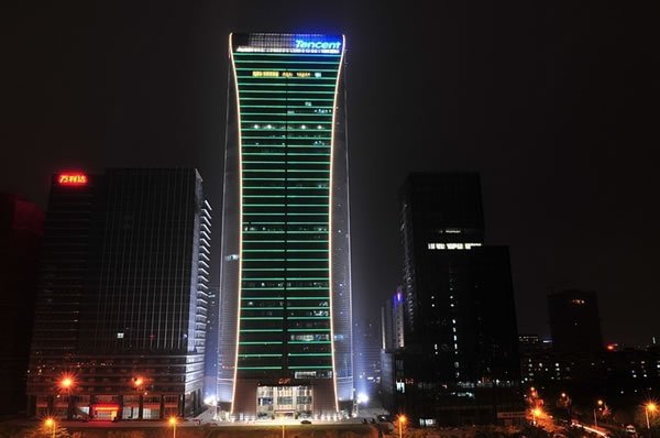 在过天桥的时候,我特意拍了一张腾大的夜景,留作纪念,表示我终于要到腾讯上班了。