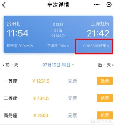 成都铁路局跨局线路:从贵阳北开往上海虹桥的G1328次,承运车型是CRH380D