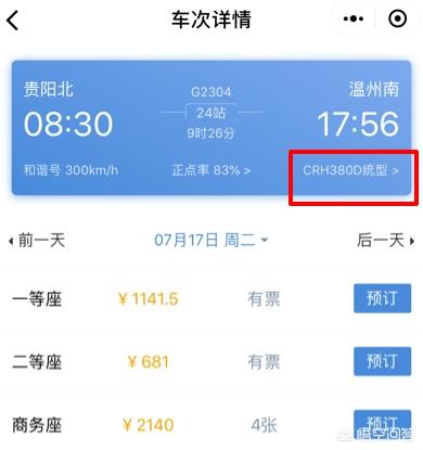 成都铁路局跨局线路:从贵阳北开往温州南的G2304次、G2308次,承运车型是CRH380D