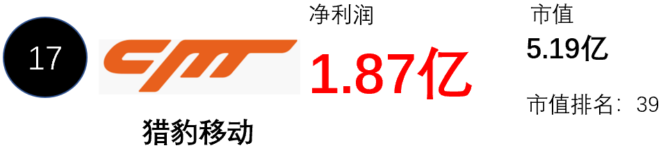 即使是Top10的公司,赚钱能力也跟BAT有非常大的差距。