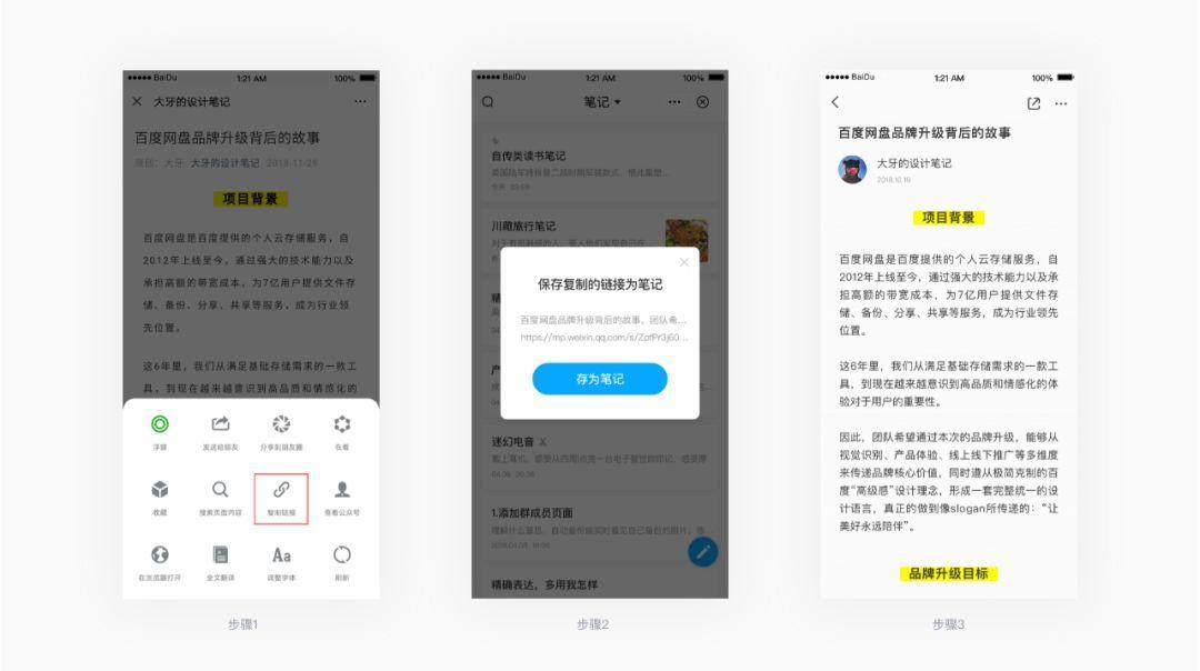 同时,用户还可以把在其他产品上看到的优秀文章,以复制链接的形式,剪藏到网盘成为笔记,永久保存。