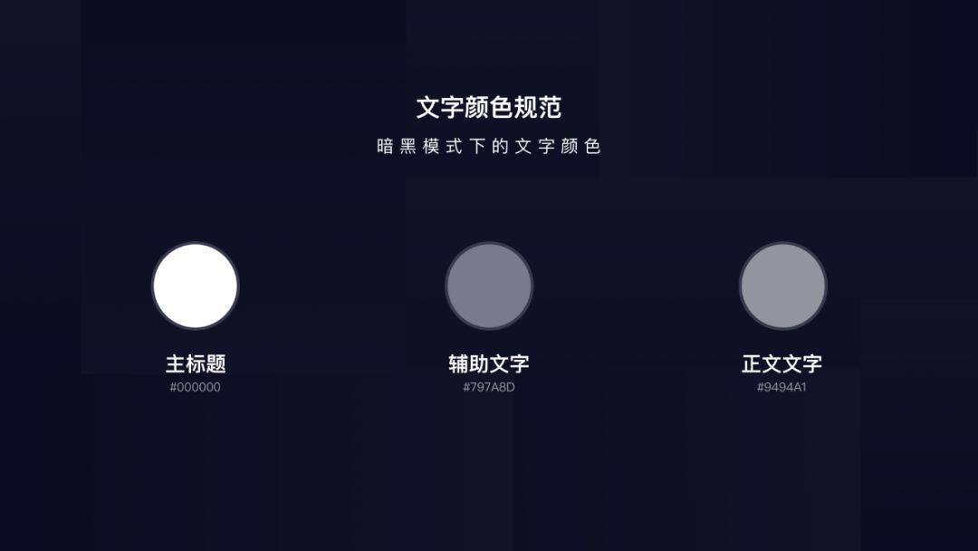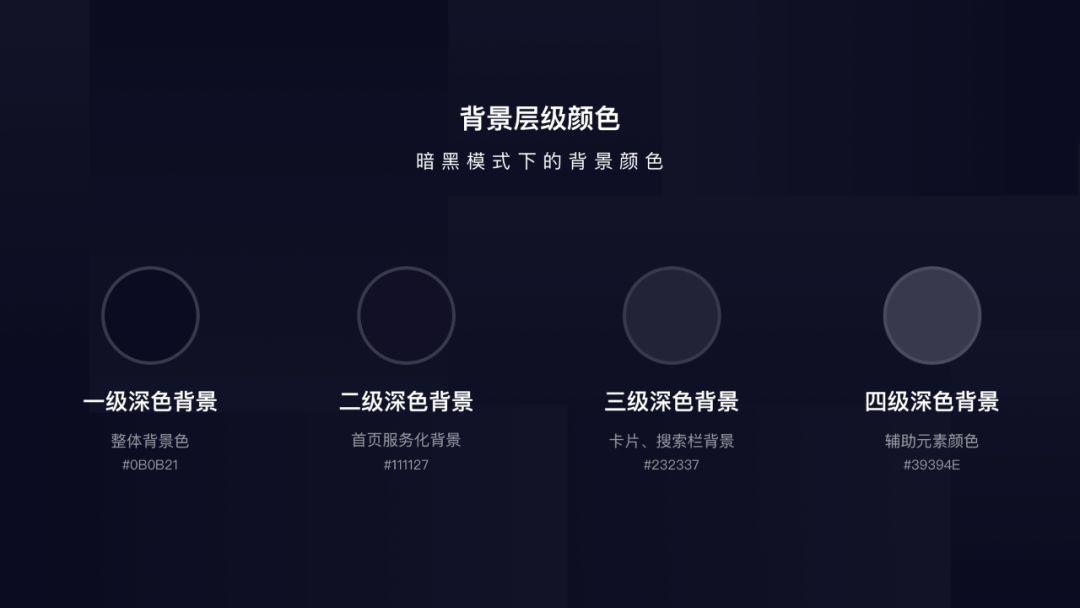 为了提高适配暗黑模式的开发效率,根据页面不同层级的内容,我们定义了几种规范层级颜色,以及文字颜色等规范。