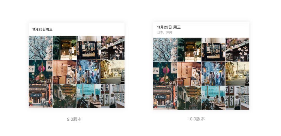 新增地点信息:对已存储的照片及视频,提取并展示地理位置信息,让用户浏览照片时有更强的情感带入。
