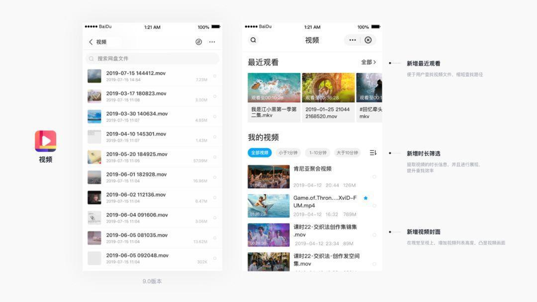 以前网盘的视频采用列表形式,但是列表中视频缩略图并不能满足用户快速查找及消费的诉求,甚至让人崩溃。因此在10.0版本中,对视频服务模块进行重新设计。