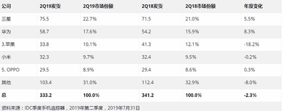 与此同时,三星也公布了第二季度收益报告,其中手机业务营收为259.9亿美元,低于华尔街此前估算的263.1亿美元,且与去年同期相比下降了12%。此外,三星的财报中还显示出高端智能手机Galaxy S10的销售状况不尽如人意。