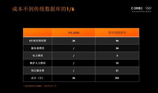 在性能强大的同时,基于云原生的 POLARDB在成本上依然具有优势,阿里云官方透露的数字显示,将云原生数据库与传统数据库的费用进行对比,POLARDB 的成本不到传统数据库的 1/6。