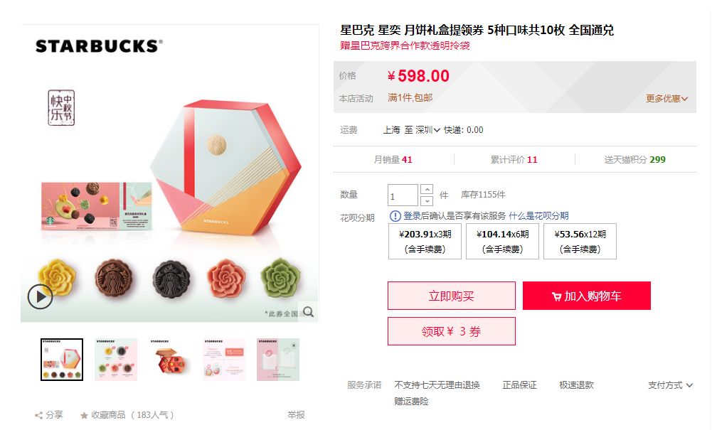 其他月饼卖几十块,星巴克的月饼可以卖几百块,同样这几百块的月饼也在抬高星巴克的价值。
