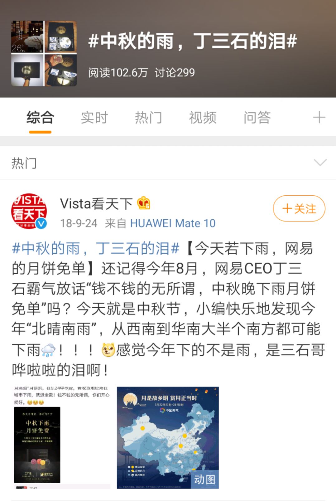 第三,客户群体不匹配。网易考拉在活动结束前,让“Vista看天下”转发活动,虽然他们有1000多万的粉丝,但是这种很正式的新闻杂志受众明显与会买月饼的青年消费群体不符,所以这钱也是白花了。