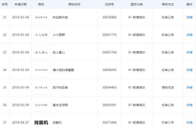 此次,「敬汉卿」商标的第25、35、29、30、33、41类都被不同公司试图申请注册,“镜湖区知桥电子产品销售部”注册成功的就是第41类。