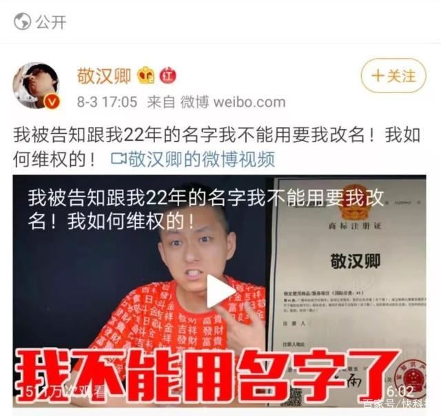视频一出,「敬汉卿」一词登上微博热搜,B站内该条视频播放破千万,同时也牵扯出更多新媒体IP商标被抢注案例,引发对此问题的集体关注。