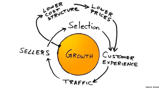 所有企业都在追求规模化,因为放大规模后不仅可以降低成本,而且还能提升竞争力,最典型就是亚马逊的飞轮循环,体验越好-流量越多-卖家越多-SKU越多-体验越好,规模越大越有优势,规模经济的飞轮循环不只是互联网,适用于所有企业。