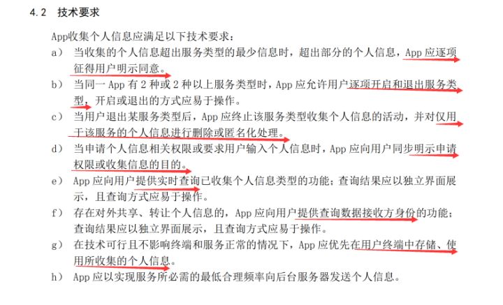 其次,在App收集个人信息中的管理要求中,对收集用户信息的方式、存储等内容做出规定,旨在减少App不必要的用户重要信息被收集。