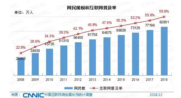 据第43次《中国互联网络发展状况统计报告》显示,我国网民规模达8.29亿,普及率达59.6%,我国手机网民规模达8.17亿,网民通过手机接入互联网的比例高达98.6%。