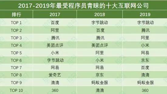 - 字节跳动蝉联“90后程序员最青睐的互联网公司”榜首,腾讯、阿里紧跟其后;