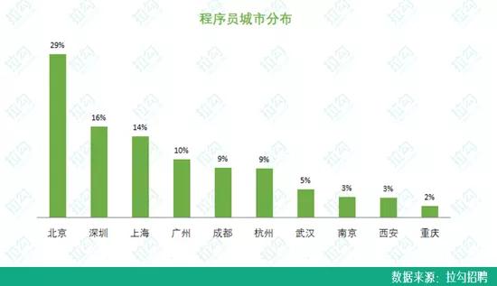 从城市分布来看,90后互联网从业者大都分布在北京、深圳、上海、广州、成都、杭州等城市。