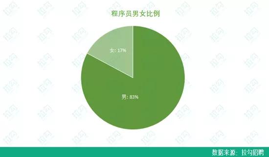 大多数人潜意识中,程序员都是男性,但根据拉勾后台数据显示,女性程序员占比高达17%。