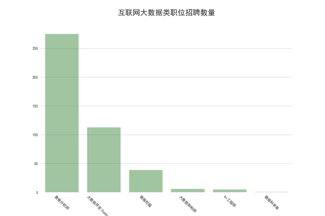 大数据相关职位招聘数量本月总数是 439 个,较上月数量有所下降,数据分析师仍是排名第一,数据分析和大数据开发两个职位仍占主导,占比 88.38%。