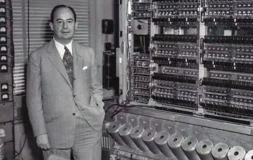 ▍被誉为「计算机之父」的普林斯顿大学教授约翰·冯·诺依曼身着正装站在计算机前