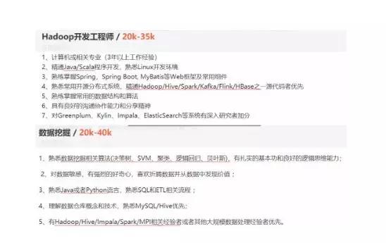 上图是一个独角兽公司的Hadoop大数据工程师招聘启事,薪资是20-35K,可以说是一个普通的薪资范围。
