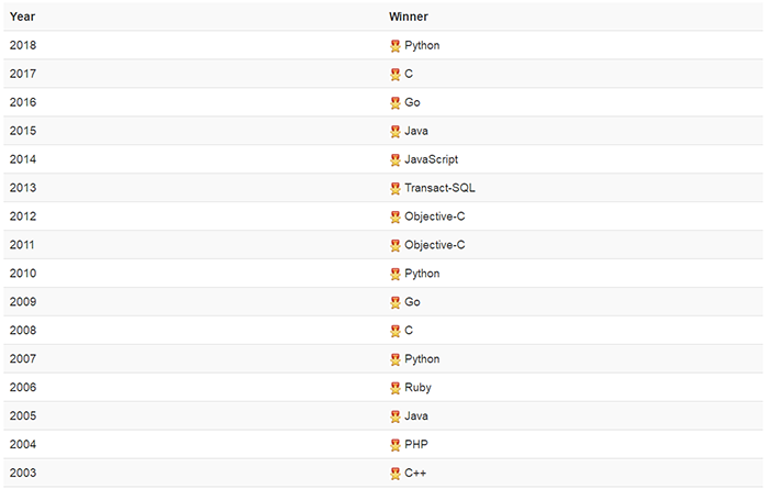 而在最新一年的年度冠军里,Python也依然是榜上有名。