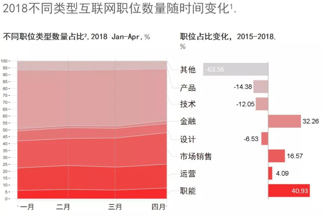 从15年以来的职位占比变化,可以看到职能类型的职位需求增加最多,其次是金融、市场销售。