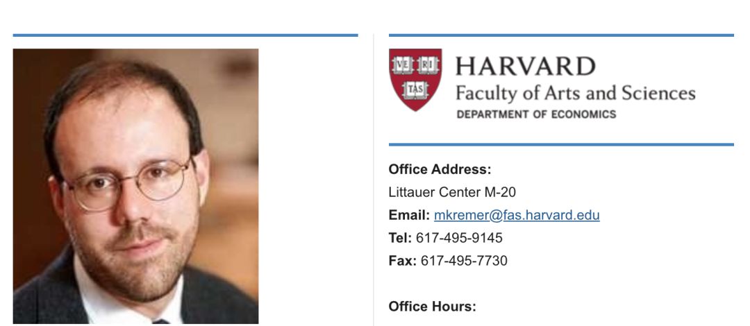 据哈佛大学官网介绍,克雷默是美国艺术与科学学院院士、麦克阿瑟奖学金和总统学院奖学金获得者,还被世界经济论坛评为全球青年领袖。他的研究聚焦于发展中国家的教育、健康、水源、农业等问题,并曾因为在健康经济、农业经济和拉丁美洲方面的研究获奖。