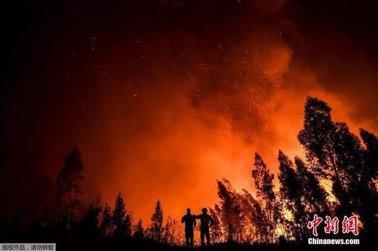 当地时间2019年7月21日,葡萄牙中部爆发山火,现场烈焰滚滚。