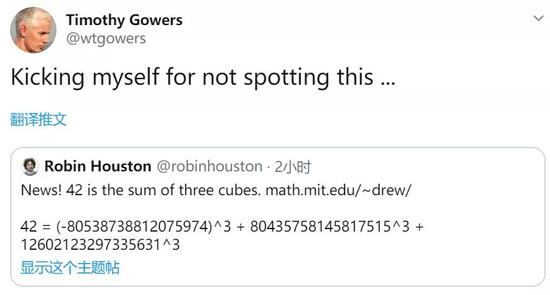 在推特上,菲尔兹奖得主高尔斯也转发了这个结果。