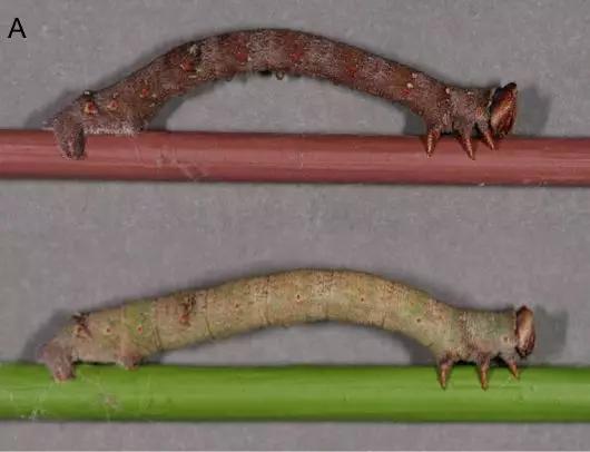 不管落到的植物的颜色是桦木的白色,还是橡木的棕色,或又是柳条的绿色,桦尺蠖都可以生产出相应的色素,进而匹配落到该植物上的颜色。