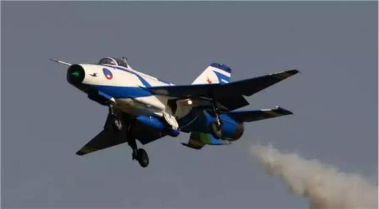 后来,歼七EB改换了蓝白相间的涂装,后来升级歼七GB,沿用了蓝涂装。
