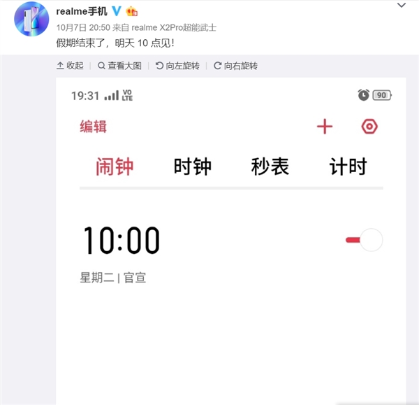 10月8日消息,realme官方预告将在今天10点宣布新机:realme X2 Pro。