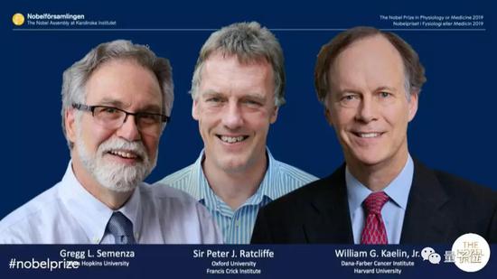 获奖者:Gregg L。 Semenz(美国约翰霍普金斯大学)、Sir Peter J。 Ratcliffe(英国牛津大学)、William G。 Kaelin,Jr。(美国哈佛大学)。