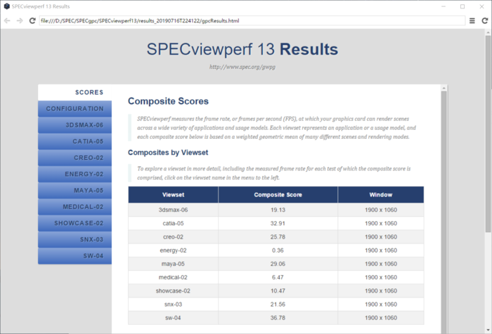 手上这台附带了RX 540X独显,我用SPECviewperf 13测试了下整机在一些专业应用包含显卡加速的表现。虽然RX 540X定位入门级独显,但如果你真的用到一些支持GPU加速的应用的话,还是聊胜于无,而且至少不会占用你的内存。