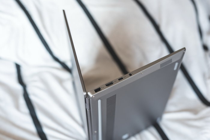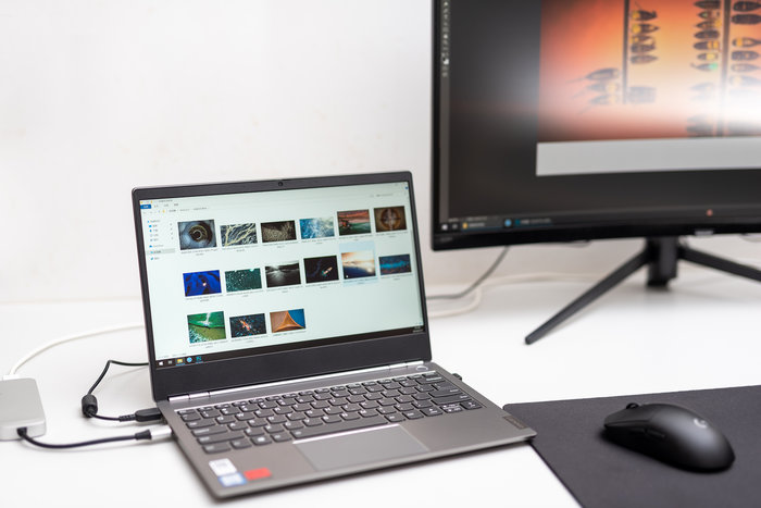 ThinkBook 13s这块IPS屏幕实际素质也不错,除了是IPS广视角屏幕以外,色域覆盖也达到了99%sRGB,工作之余还可以用来修修图片或者看视频。而且窄边框的设定,也比较讨好现在人的喜好。