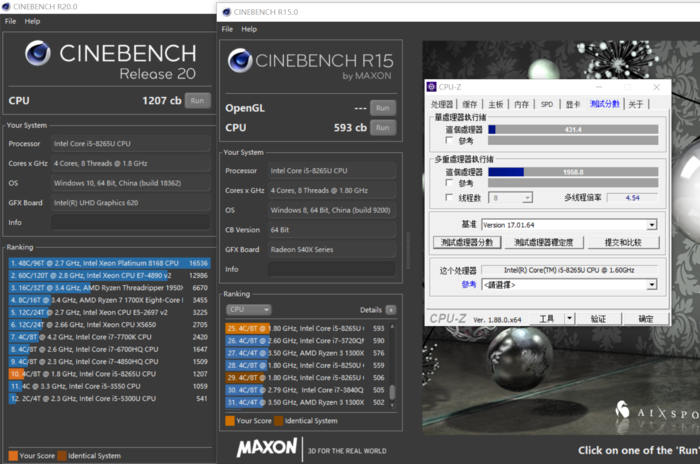 这边要注意R15居然跑到接近600cb,这点有点超出预料,因为一般保守系的轻薄本可能都是5xx cb的表现。