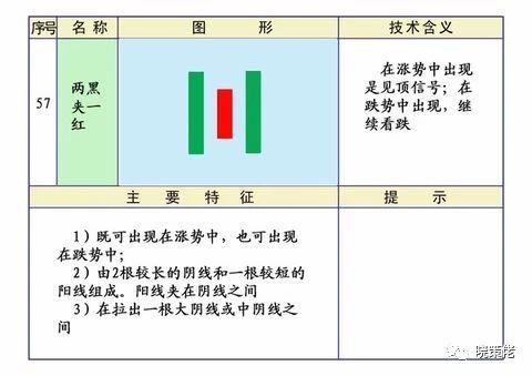 两个黑夹着一红,多方可能要走熊。顶部一见十字长,快快离场求安祥。