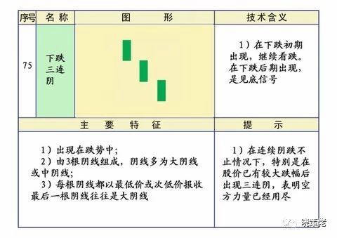 遇见下跌三连阴,肯定大跌箭穿心。一看下跌三颗星,别急仔细要辨清。